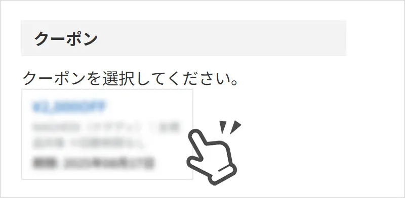 クーポンはご注文手続き画面でご確認いただけます。必ず選択のうえ、ご注文ください。