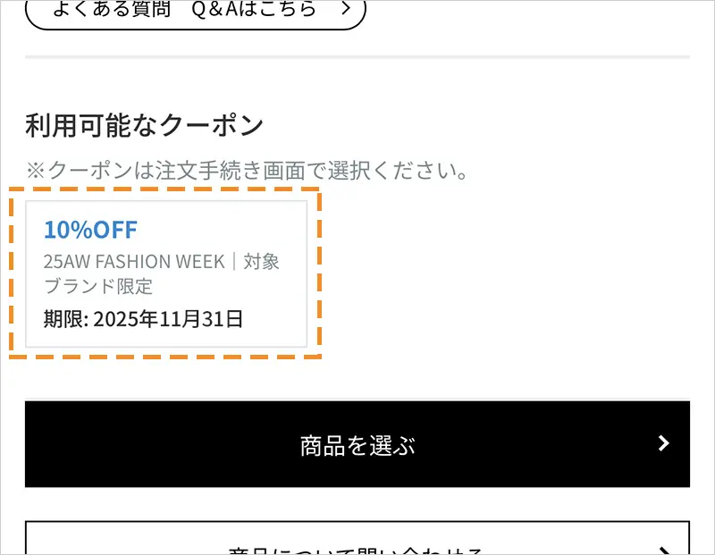 クーポンの内容は商品やブランドごとに異なりますので、各商品ページにてご確認ください。