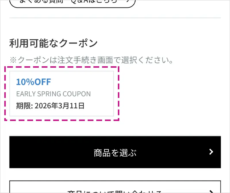 クーポンはご注文手続き画面でご確認いただけます。必ず選択のうえ、ご注文ください。