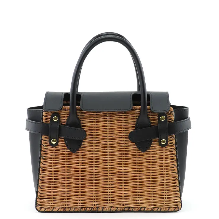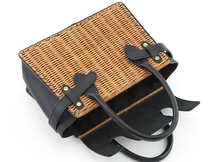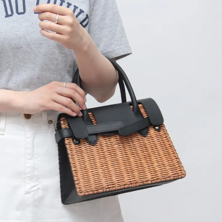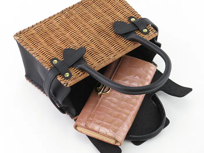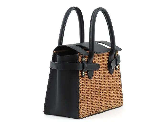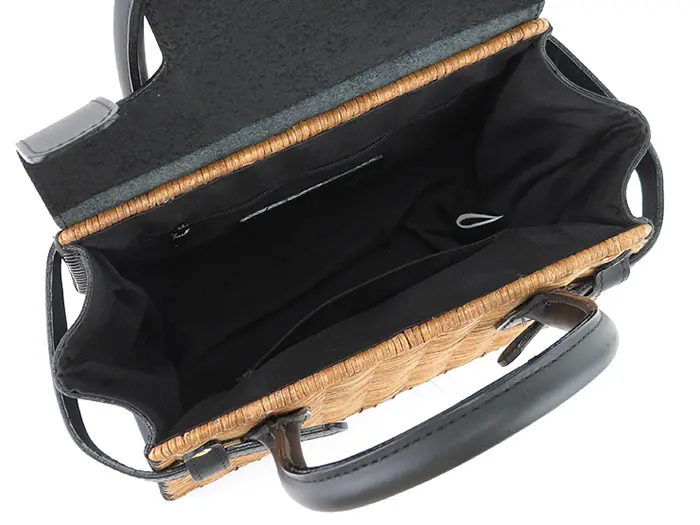 天然素材ラタンをウィッカー編みで丁寧に編み上げたハンドメイドの温かみ感じる逸品です。ハンドルやフラップ、マチ部分はレザーを使用することで、ナチュラルな雰囲気の中に品の良さがプラスされ、大人が持てるカゴバッグに仕上がっています。サイドのマチを内側に入れることですっきりとした印象でお持ちいただけます。