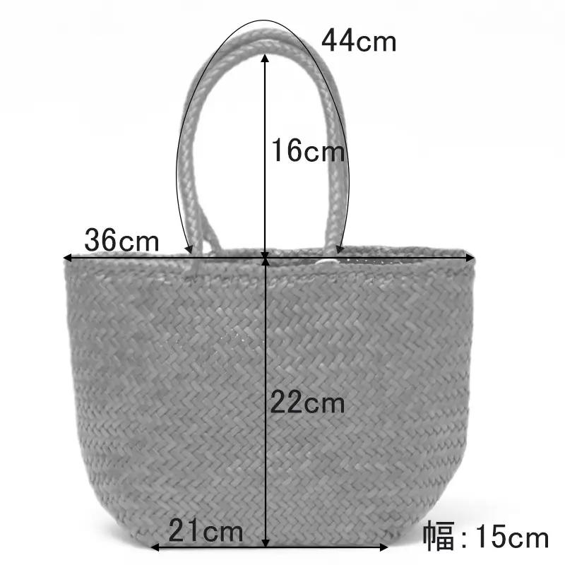 丁寧に編み込まれた華奢な持ち手は手に馴染みやすく、ハンド持ちにちょうどよい長さ。やや長めの設計で、薄手の服装であれば肩掛けも可能です。