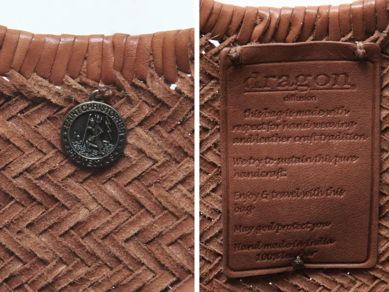 旅や海の守り神として知られ、サーファーたちに親しまれている「セントクリストファー」のメダルチャームが内側に施されています。裏面にはブランド名の刻印入り。このチャームが"正規品"の証となります。さらに、内側にはレザータグも縫い付けられており、細部まで本物にこだわった仕上がりです。