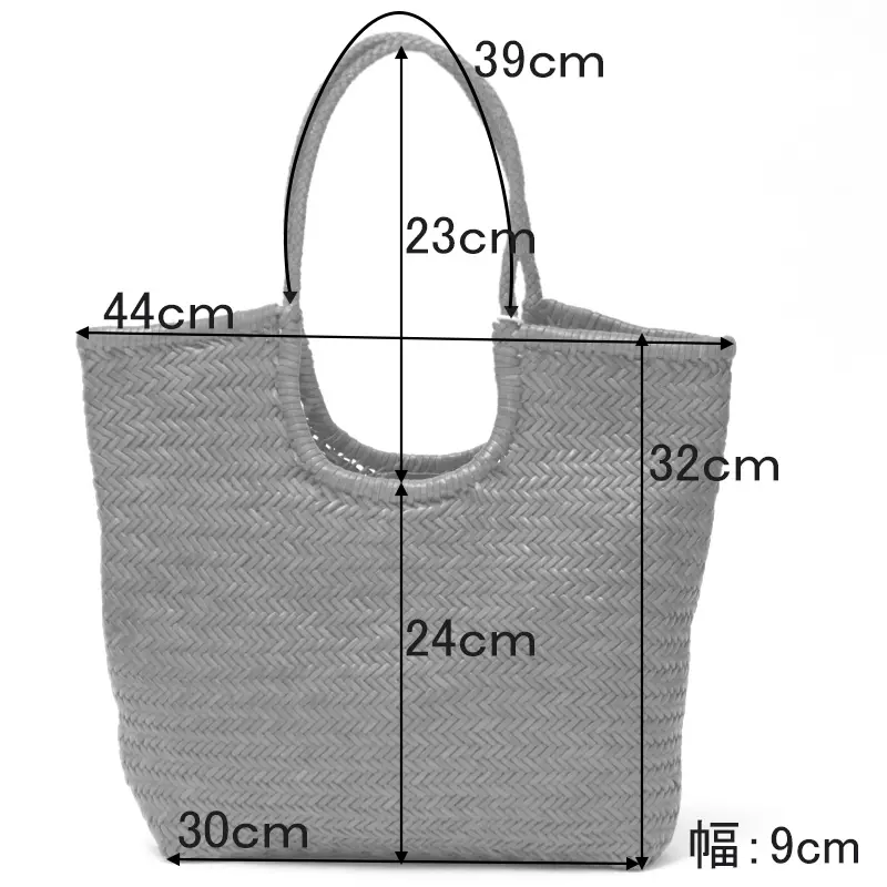 丁寧に編み込まれた華奢な持ち手は、手に優しく馴染みやすい仕上がり。くり手デザインで肩掛けもゆったりとでき、小脇にすっきり収まる絶妙なバランスが魅力です。
