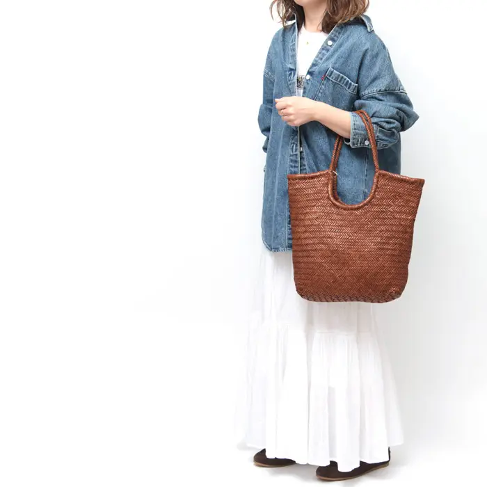 軽やかに使える縦型レザーかごバッグ
