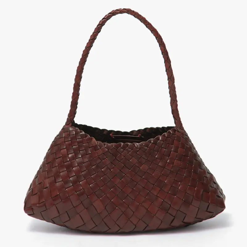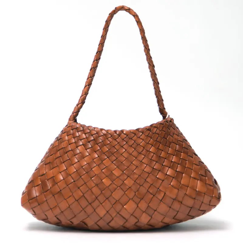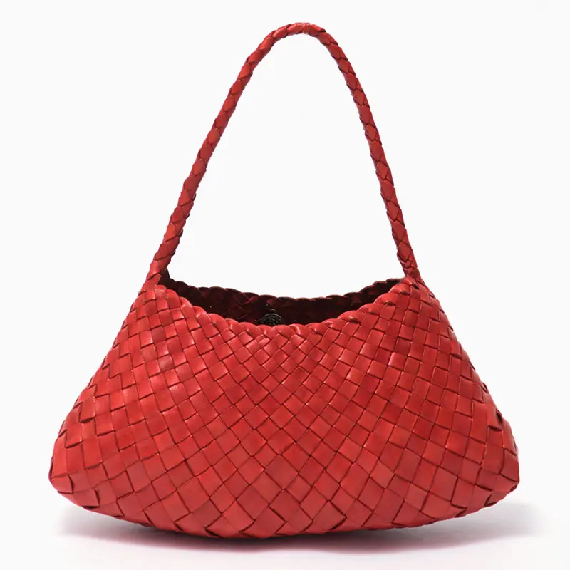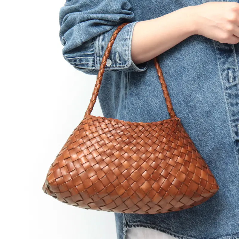 つばに向かって繊細に細くなる不規則な革編みのストラップが特徴の「Rosanna」は、ブランドのベストセラーモデル「Santa Croce」を彷彿とさせるデザイン。春夏は涼しげに、秋冬は抜け感のあるレザーバッグとして、シーズンレスに活躍します。カジュアルからフェミニンまで幅広いスタイルにマッチし、毎日の装いに上品なアクセントを添えてくれる存在です。
