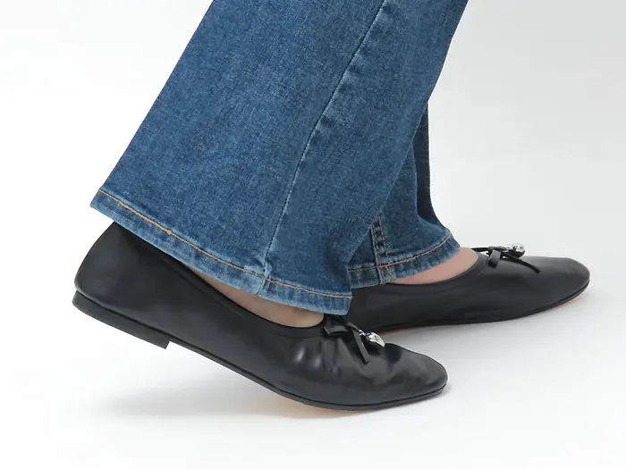 つま先は上品&女性らしさが叶う細めのラウンドトウ。履き口は深めのカッティングで、足を長く美しく見せてくれます。アッパーにはきめ細やかで非常に柔らかな足当たりの良いナッパレザーを使用。