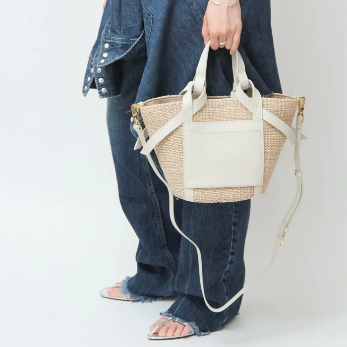 • VIOLAd'ORO ヴィオラドーロ MIRO アバカ レザーポケット 2wayかご (M) V-8717