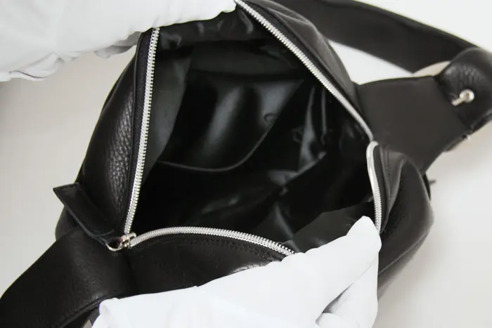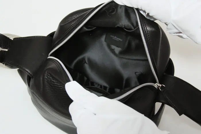 ショルダーは長さ調節が可能です。シルバーの大きな丸いバックルがポイントになっています。太めのショルダーはレザーも柔らかく、肩への負担を和らげてくれます。両手が空く斜め掛けのバッグはお出掛けや旅行に重宝します。