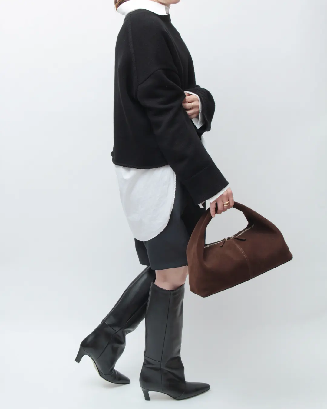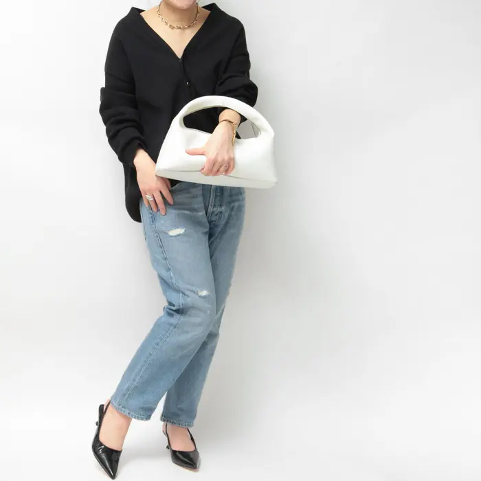ミニマルなデザインが上品な印象のワンハンドルバッグ。遊び心のあるドーナツ型のユニークなフォルムがモードなスパイスを加え、上質なレザーにゴールドファスナーがリッチなムードを演出。デイリーな装いを活性化してくれる大人のためのレザーバッグです。