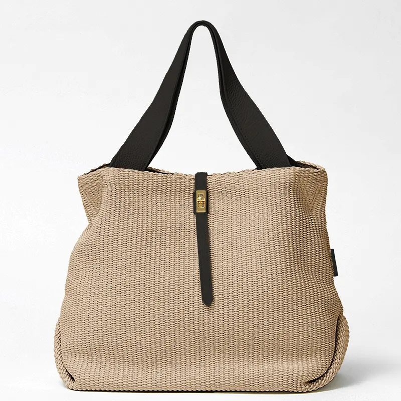 上品な風合いが魅力のラフィア調シートに牛革を組み合わせることで、ラフさと上品さのバランスの取れたカゴバッグ。キレイめスタイルの外しアイテムとして、カジュアルなスタイルのワンランクアップのアイテムとして、幅広いコーディネイトに馴染みやすいアイテムです。