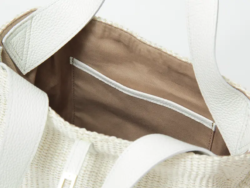 素材 ラフィアシート(コットン52%/ポリアミド48%)、牛革(イタリアンレザー)