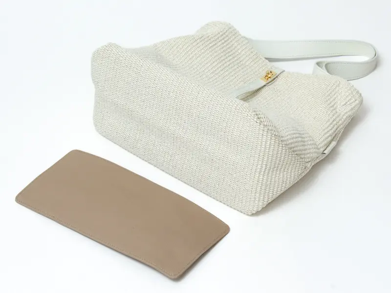 内側に取り外し可能な底板があるので、柔らかな素材でも型崩れすることなく、きれいなシルエットを保ったままお持ちいただけます。