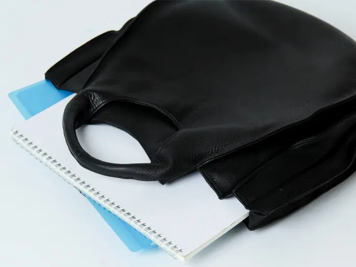 お出かけの必需品に加えペットボトルや折り畳み傘なども収まり、サイドのプリーツを広げればA4サイズを横向きに収納することも可能で見た目以上の収納力です。