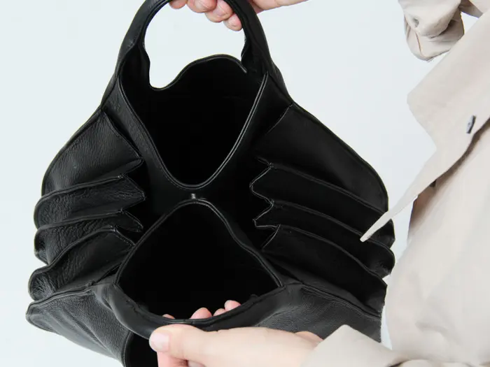 サイドが蛇腹状になっているのでマチが大きく広がり、荷物がしっかり収まります。
