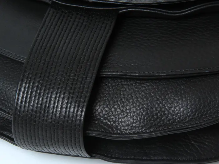 底はプリーツのようなジャバラのデザインになっており、シンプルなブラックをより際立たせモードな雰囲気に仕上げてくれます。