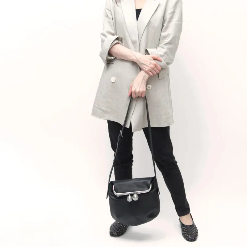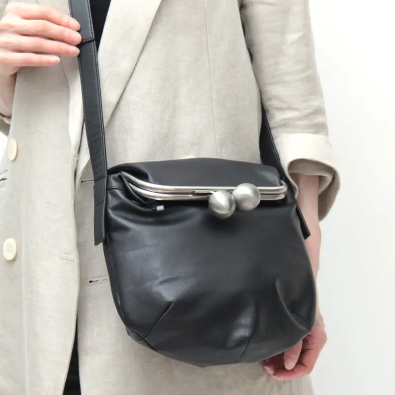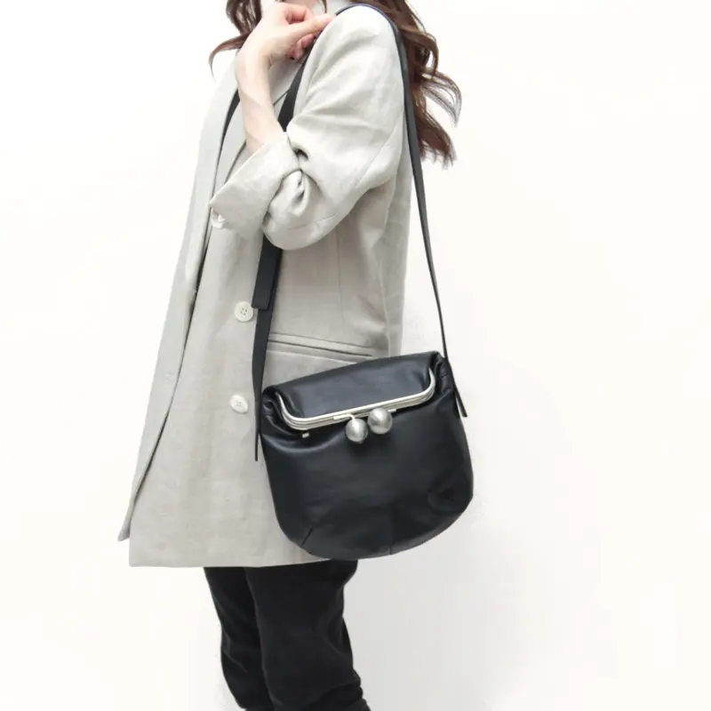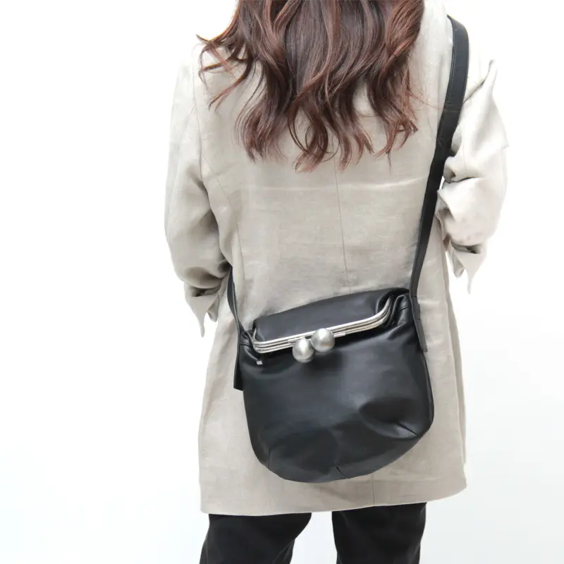 kawa-kawa カワカワ kuchigane レザー ショルダーバッグ ブラック