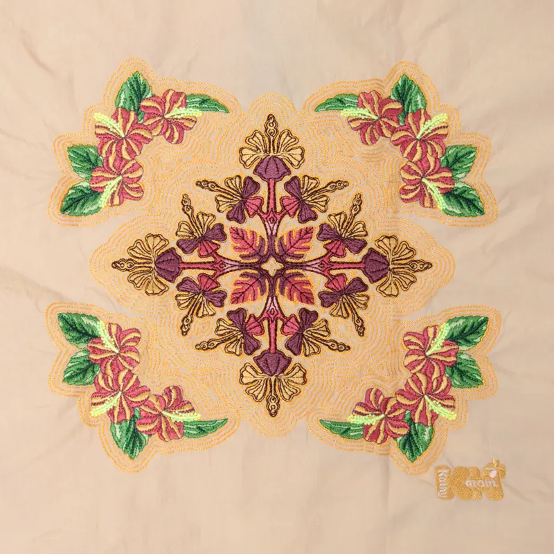 ハワイアンキルト作家 キャシー中島さんがデザインプロデュースするブランド「キャシーマム」とのファーストコラボレーションモデルが登場。キャシー中島さんデザインのハワイアンキルトを、ボールアンドチェーンの刺繍によるアートワークで表現をしました。