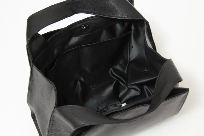 開閉はマグネット仕様。ワンタッチで開け閉めできるので荷物がスムーズに取り出せます。マチ幅が広く、長財布やポーチなど必需品の他、ペットボトルや折り畳み傘も収まります。内ポケット付きなので、鍵やリップなどの小物が整理して収納できます。