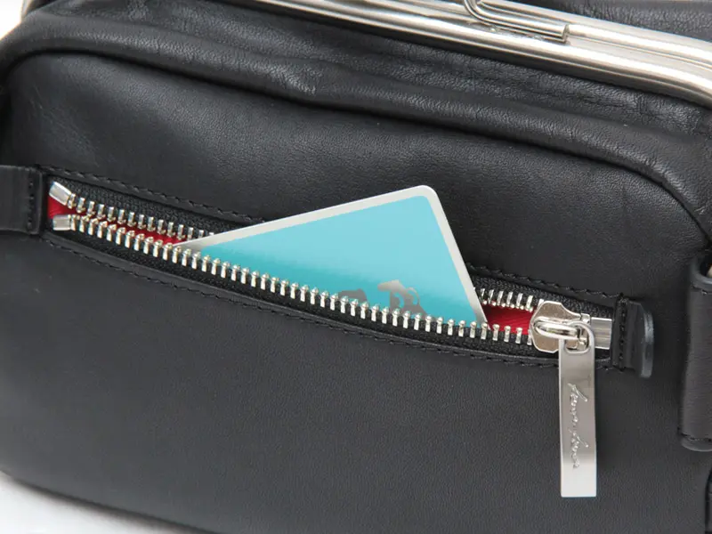 背面にはファスナーポケットが付いており、さっと取り出したいICカードなど収納するのに便利です。