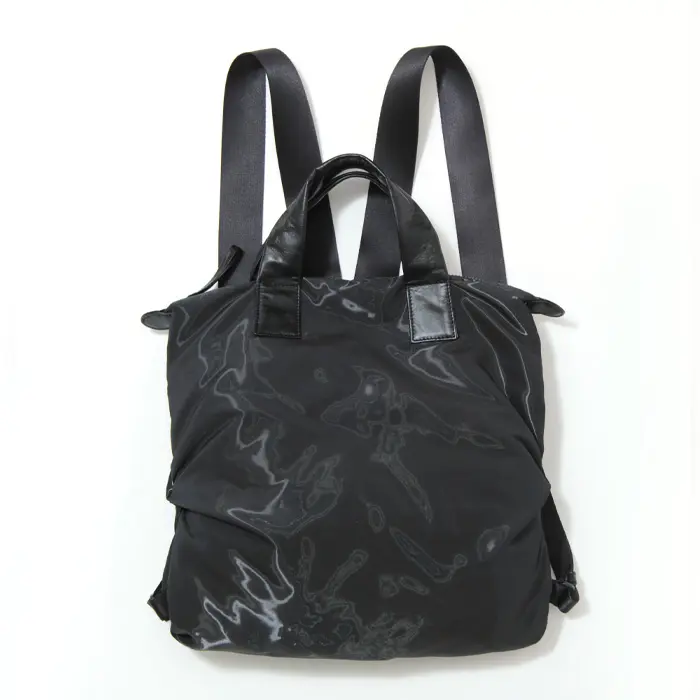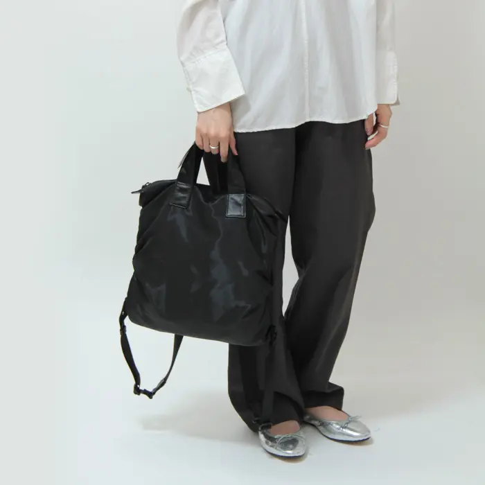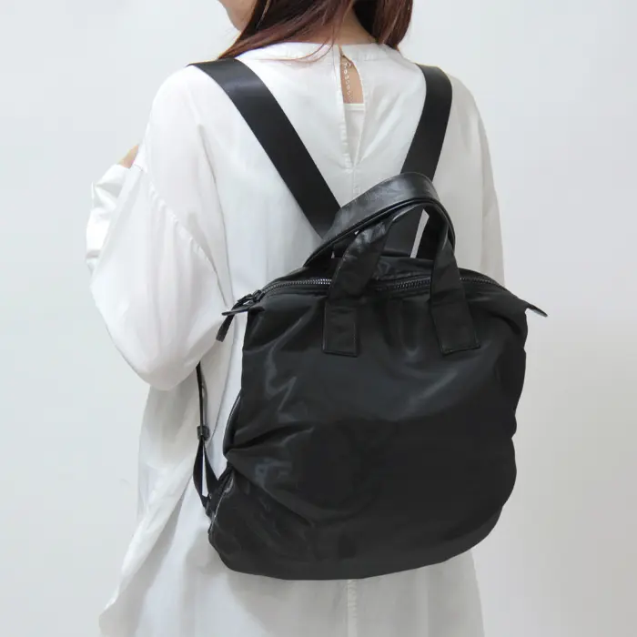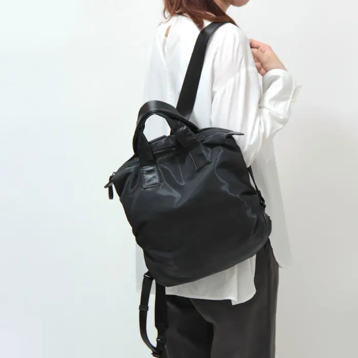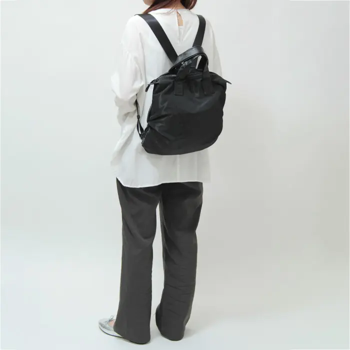 光を受けると変化する光沢感が近未来を思わせ、モードなイメージを引き立てるESTINE/エスティーヌの“ルーモス”シリーズ。驚くほど軽やかなボディにレザーハンドルを合わせ、品よく纏える大人のためのリュックサックです。