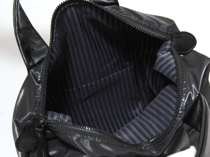 開閉は防犯面も安心のファスナー仕様。B5サイズ収まるサイズ感。スマートに背負える薄マチタイプですが、荷物に合わせて膨らみがあるので見た目以上の収納力で、幅広いシーンで活躍してくれます。内ポケット付きなので、小物も整理して収納できます。