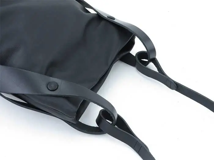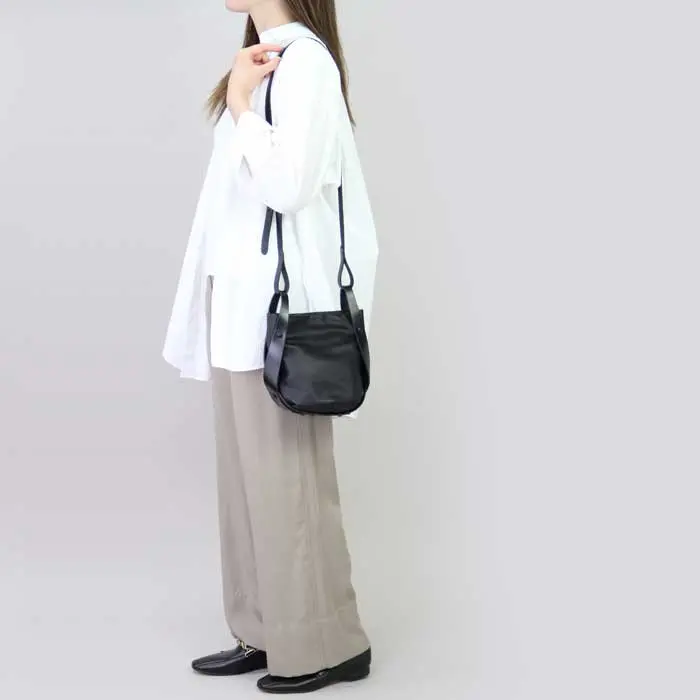 柔らかいレザーと、ハリのあるレザーを組み合わせ、くったりだけどカジュアルすぎないきちんと感のあるバッグ。使い込むごとに柔らかみの増す、経年変化を楽しむことのできるバッグです。