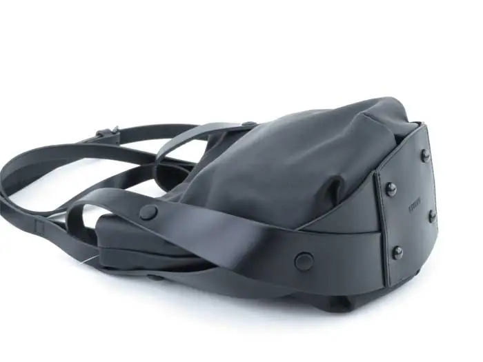 サイドや底面にはハードタイプのレザーを施し、デザイン性も兼ね備えた安定感のある使い心地。また、底面には底鋲が付いているので、バッグを置いた際の擦れや汚れを防いでくれるのも嬉しいポイントです。