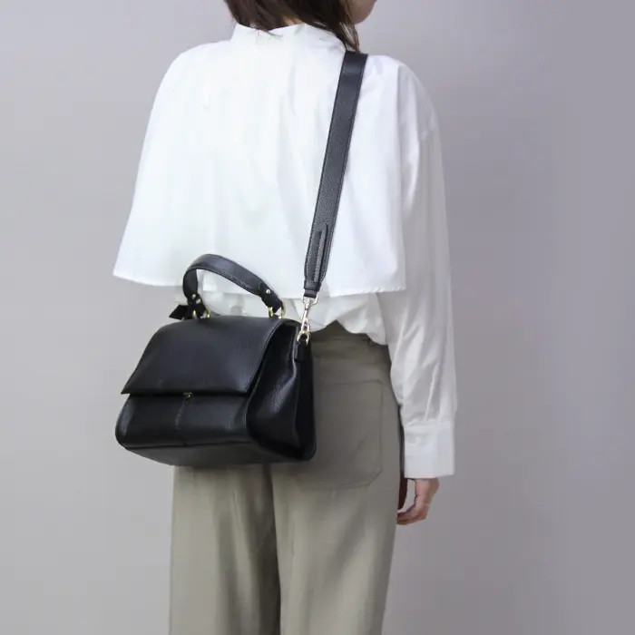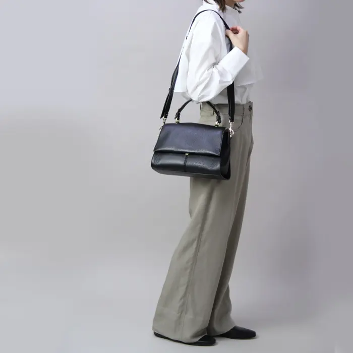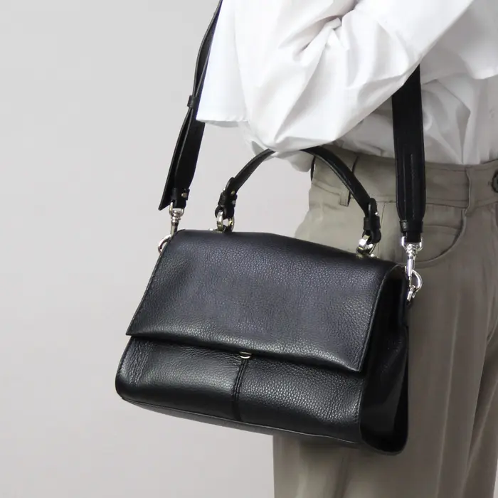 ショルダーストラップは幅約3cmとやや太めのデザインで、お洒落なだけでなく持ち心地の良さも叶えたデザイン。2way仕様だから、肩掛けや斜め掛けして様々なシーンで活躍します。ギボシ留めで長さ調節が可能です。
