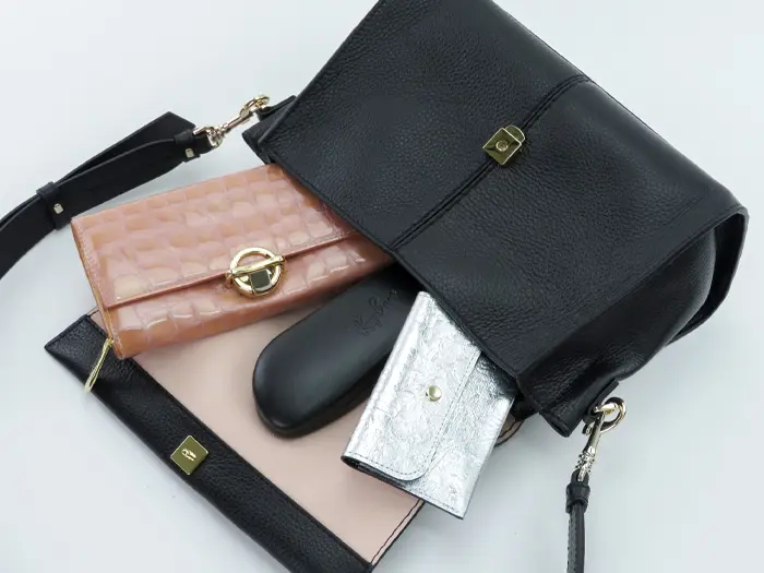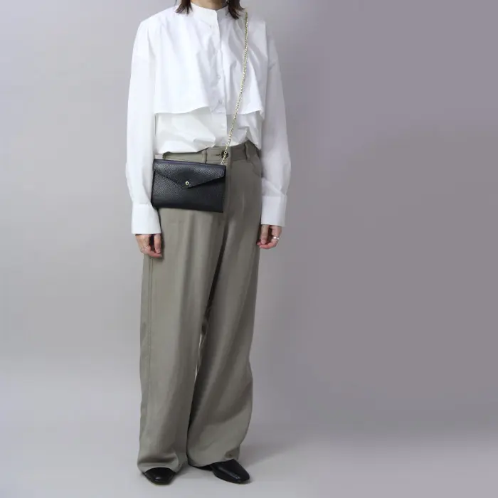 長財布・ミニポーチ・メガネケースなどの必需品が綺麗に収まるサイズ感。