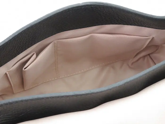 正面内側にオープンポケット2つ、背面内側にファスナーポケット1つあり、鍵などの小物も綺麗に収納出来ます。