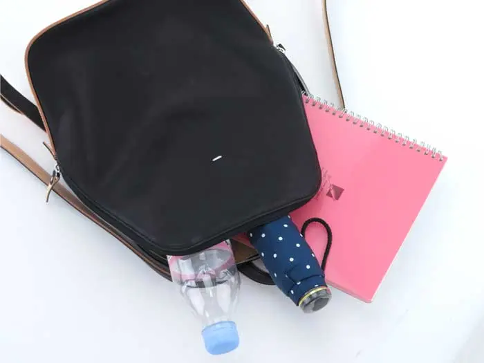 ダブルファスナーで開口部が大きく開き、荷物の出し入れがしやすい仕様です。B5サイズのノートや冊子が収まるサイズ感で、お出かけにぴったりな収納量。大きすぎず小さすぎず、女性の身体に綺麗にフィットする丁度いいサイズ感です。