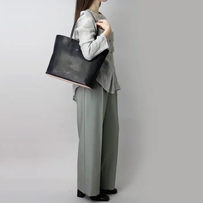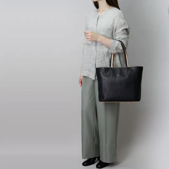 ハンドルは長めにデザインされているので、アウターを着ても肩掛けが可能です。荷物を沢山入れるビッグトートも肩に負担がかかりにくい仕様です。