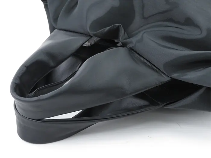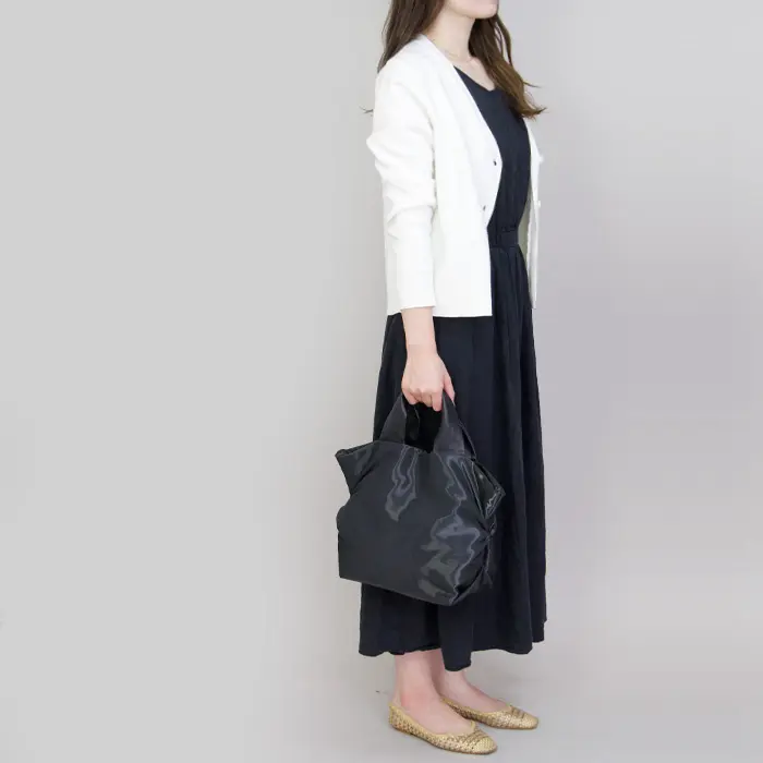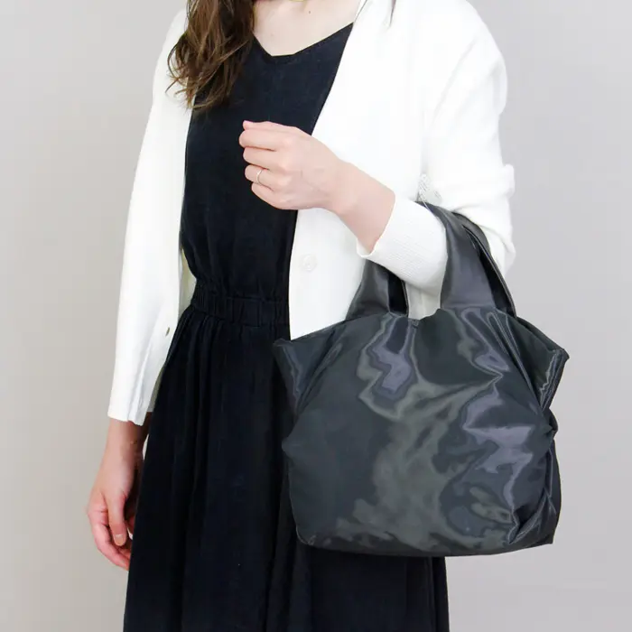 バッグサイドのドレープが、シンプルな中にもデザイン性を感じる他とは違った仕上がりに。荷物の量に合わせて変化する表情をお楽しみいただけます。