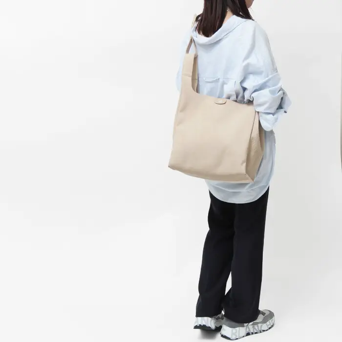 肩がけや斜め掛けで持つのはもちろん、ギボシでストラップを外せば、ハンドル持ちもできる2way仕様です。大容量なのでショッピングや旅行などにも大活躍のトートバッグです。