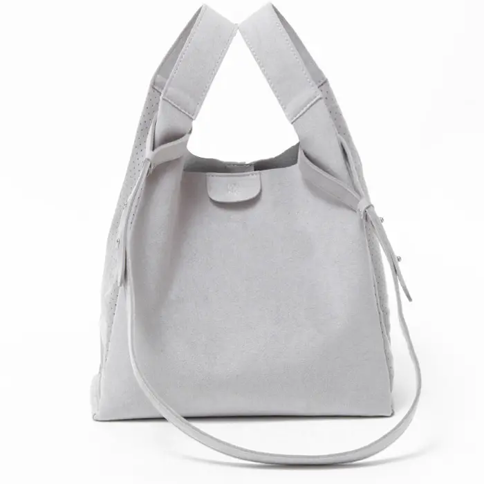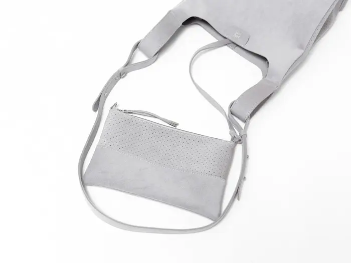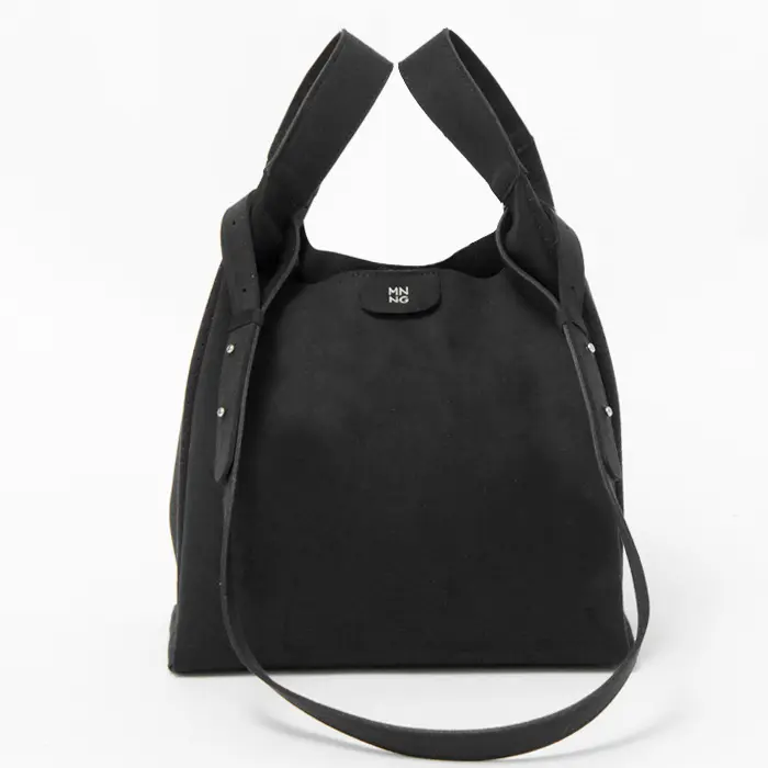 mononogu/もののぐの新しいライン「MNNG」。次世代素材のウルトラスエードを使用し、歓喜の叫び声『WooHoo!!』を表現したミディアムサイズのトートです。斜めがけや手提げにも対応する2way仕様。軽さと洗濯可能な特徴で、忙しい日常にも対応します。