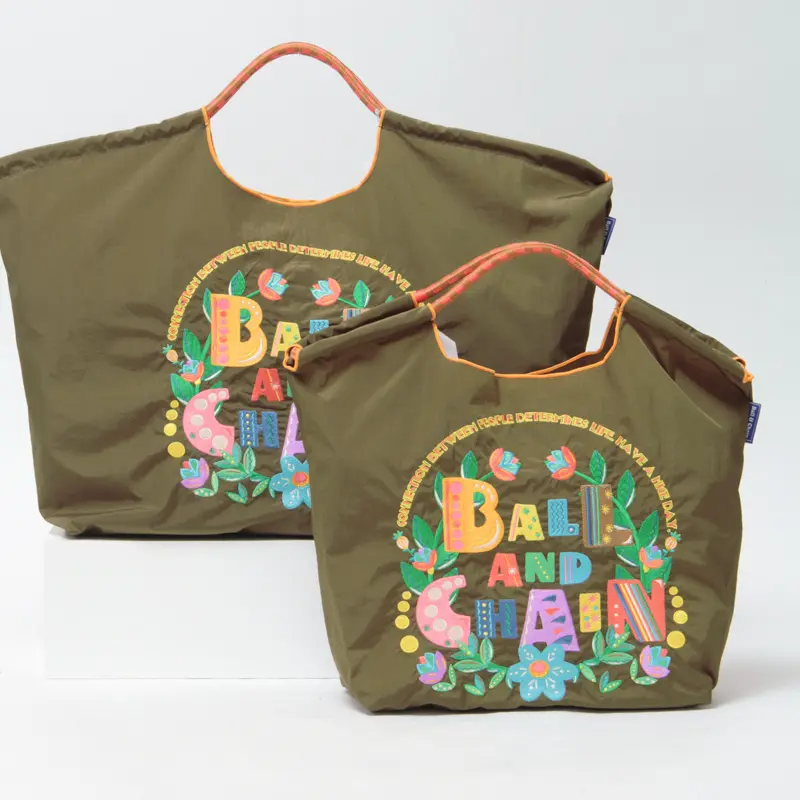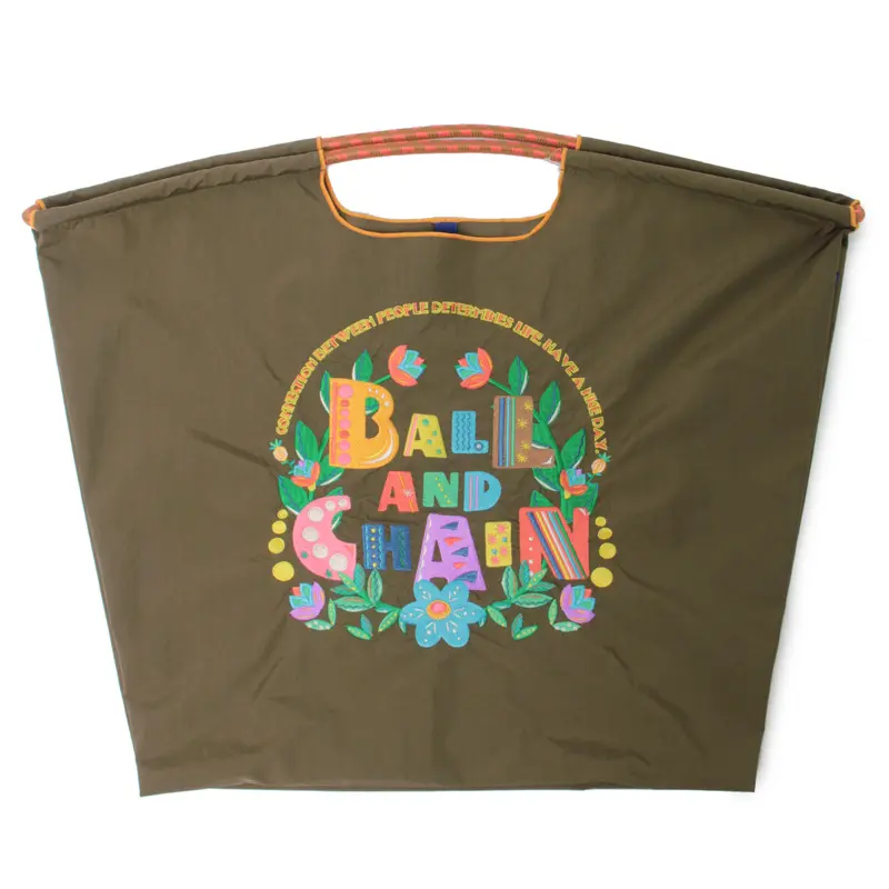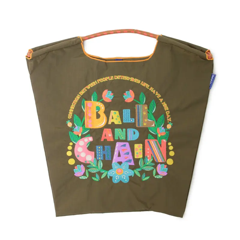 前面に施したキャッチ―な刺繍が、普段のショッピングを楽しくしてくれる"ボールアンドチェーン / BALL&CHAIN"のエコバッグ。SAN HIDEAKI MIHARA/サンヒデアキミハラのデザイナー、三原英詳さんがデザインする"オリジナルシリーズ"です。
