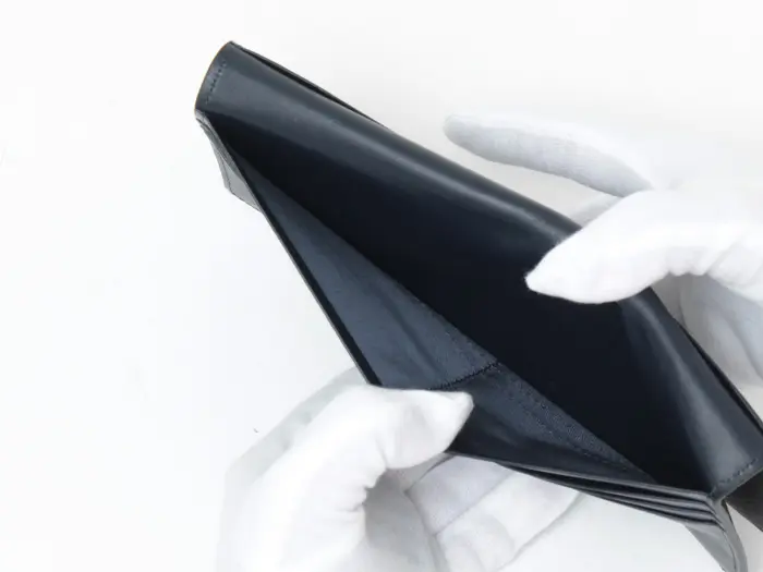 お財布を開くと中身が一目瞭然。レザーに施されたカッティングで取り出しやすいカードポケットが12個装備されています。