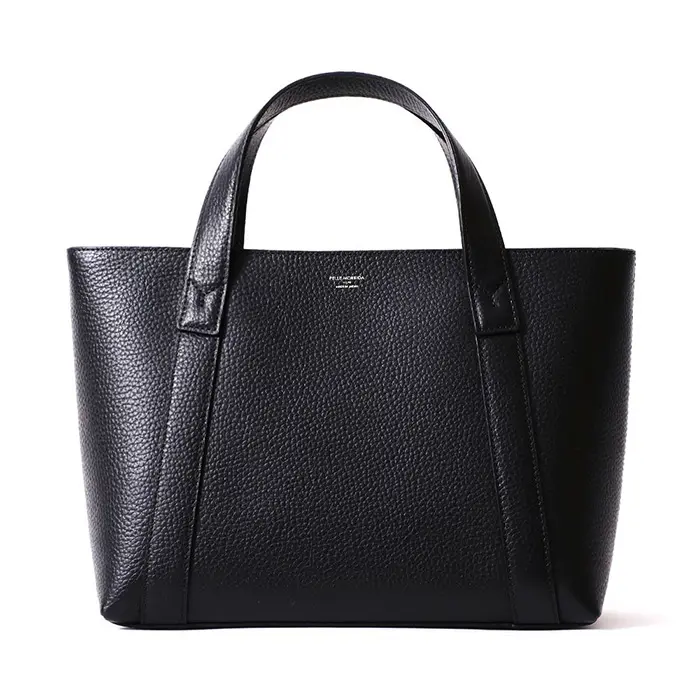 表側は柔らかな風合いのダブルフェイスレザーを使用したミニトートバッグ。皮革生産地である姫路松原地区の牛革に、細やかなシボ型を押した上質なシュリンク風レザーに仕上がっています。