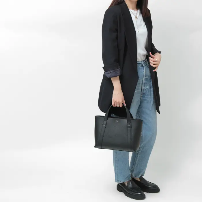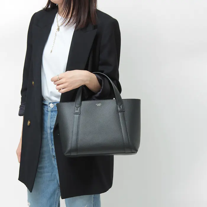ジェンダーレスなデザインで、ジャケットスタイルやカジュアルにもマッチするミニトートバッグ。ドライブやビジネスシーン、ちょっとした外出にも便利です。シュッとした佇まいで高級感があり、お出掛けの必需品が収まる使い勝手の良い丁度いいサイズです。