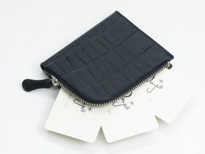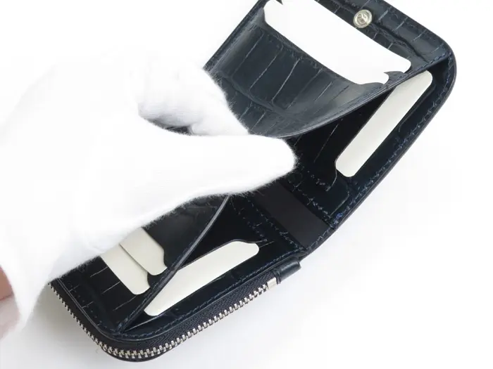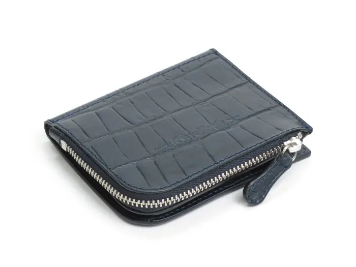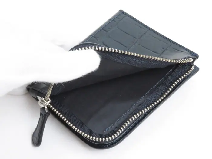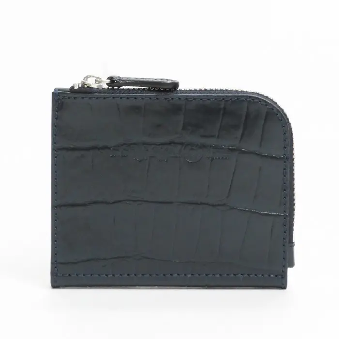 Felisi フェリージ クロコ型押し 二つ折り ミニ財布 NAVY