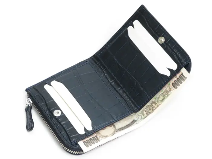 小銭収納はL字ファスナー開閉なので、しっかり開いて取り出しやすくスムーズに開け閉めできます。小銭の他にもカードやレシートなどの収納にも便利です。