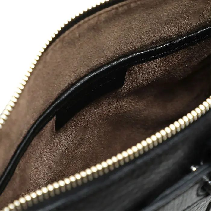 マチ幅は薄いながら、ラウンドジップの長財布も収納可能。またコンパクトながらポケットが2つ付いているのでスマートフォンやキーケースも収納できます。