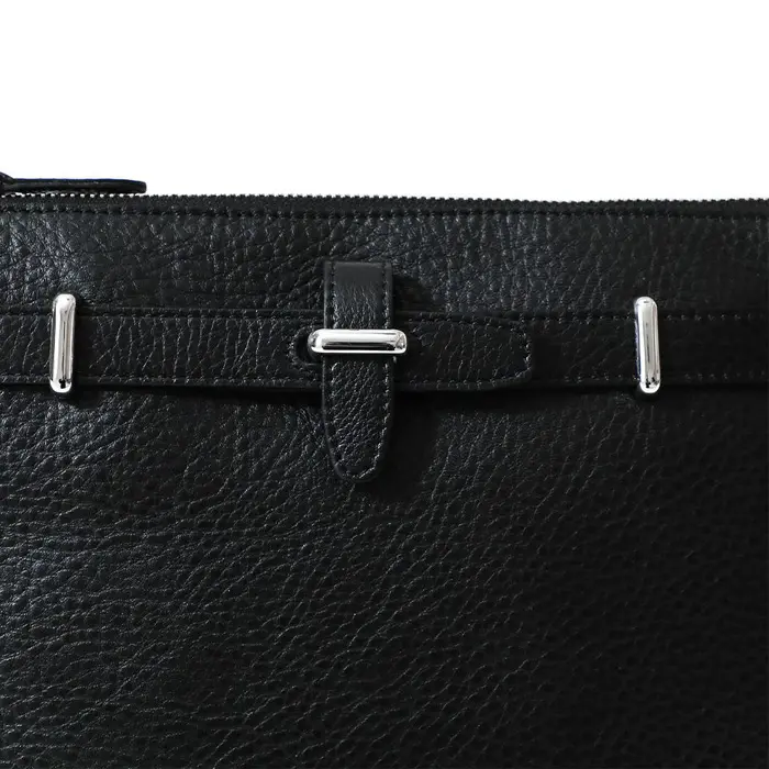 バッグ上部サイドにはマチ幅が調整できるベルトを設けています。