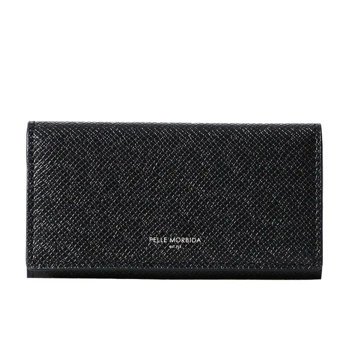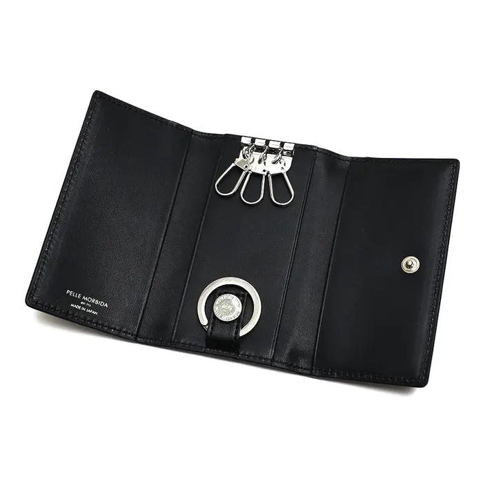 PELLE MORBIDA ペッレモルビダ BARCA 牛革(型押し)  3つ折りキーケース ブラック