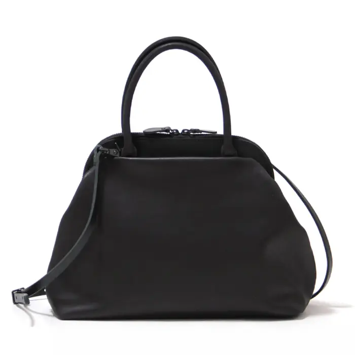 Ense アンサ がま口 レザー 2way ボストンバッグ ブラック