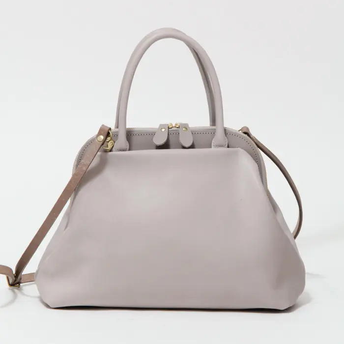 Ense アンサ がま口 レザー 2way ボストンバッグ グレージュ