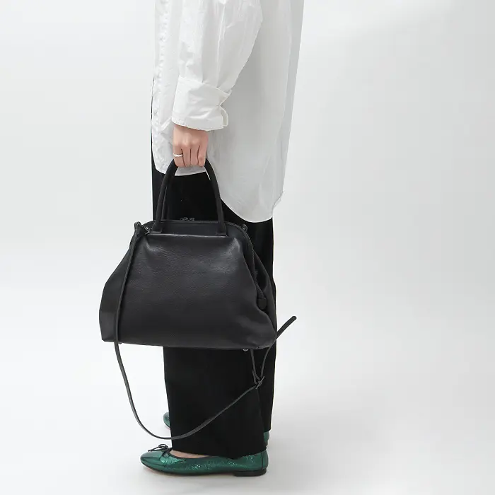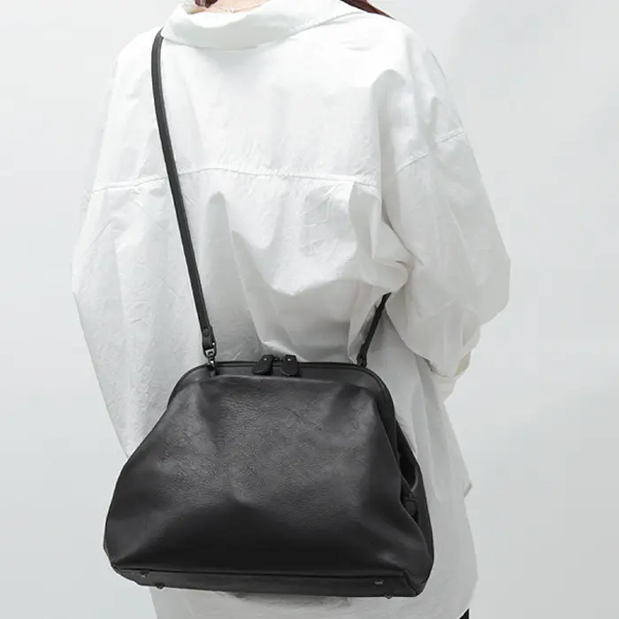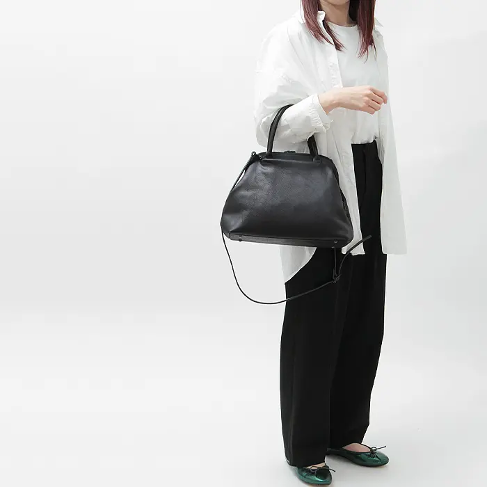 がま口をイメージしたシルエットが愛らしい“Ense/アンサ”のがま口シリーズ。シンプルでありながら他ではない存在感は、さりげなくスタイルに個性を添えます。デイリー使いに丁度良いサイズで、肩がけや斜めがけのできる2way仕様。がま口のクラシカルな佇まいが上品にお持ちいただけるバックです。