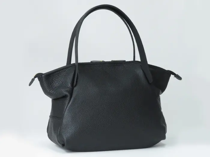 縦に付いたハンドル、サイドデザインで立体的なシルエット。一見シンプルなレザートートバッグですが、他ではない特徴的なデザインは、手にするだけで日常を少し格上げしてくれる、日々に欠かせないアイテムになってくれそう。