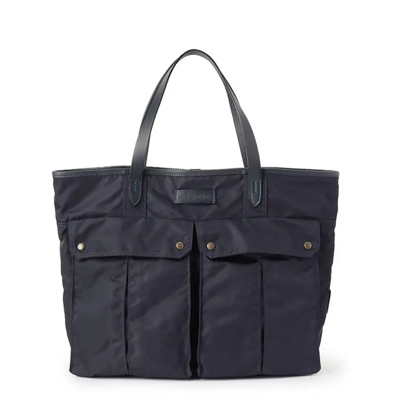 フロントのポケットデザインが特長的なナイロン×レザーのトートバッグ。"Felisi フェリージ"のアイコニックであるヘルメットバッグを彷彿とさせ、ミリタリーウェアのデザインを取り入れることで、実用性の高い印象を与えます。A4ファイルも収納でき、仕分けやすいデザインと軽さがビジネスシーンに最適。スーツにもカジュアルにも合わせやすく、オンオフ兼用で活躍します。