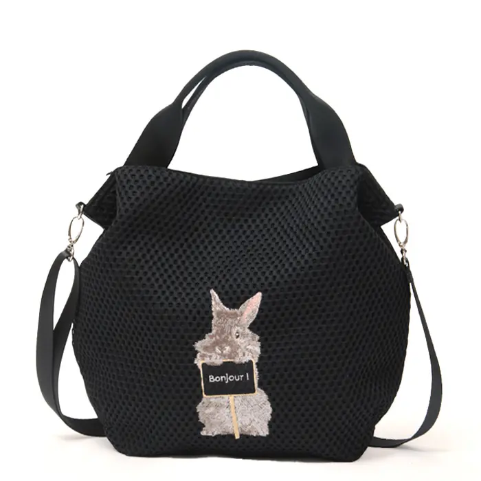 CHARUER シャルエ アニマル刺繍 メッシュ 2way トートバッグ ラビット/ブラック